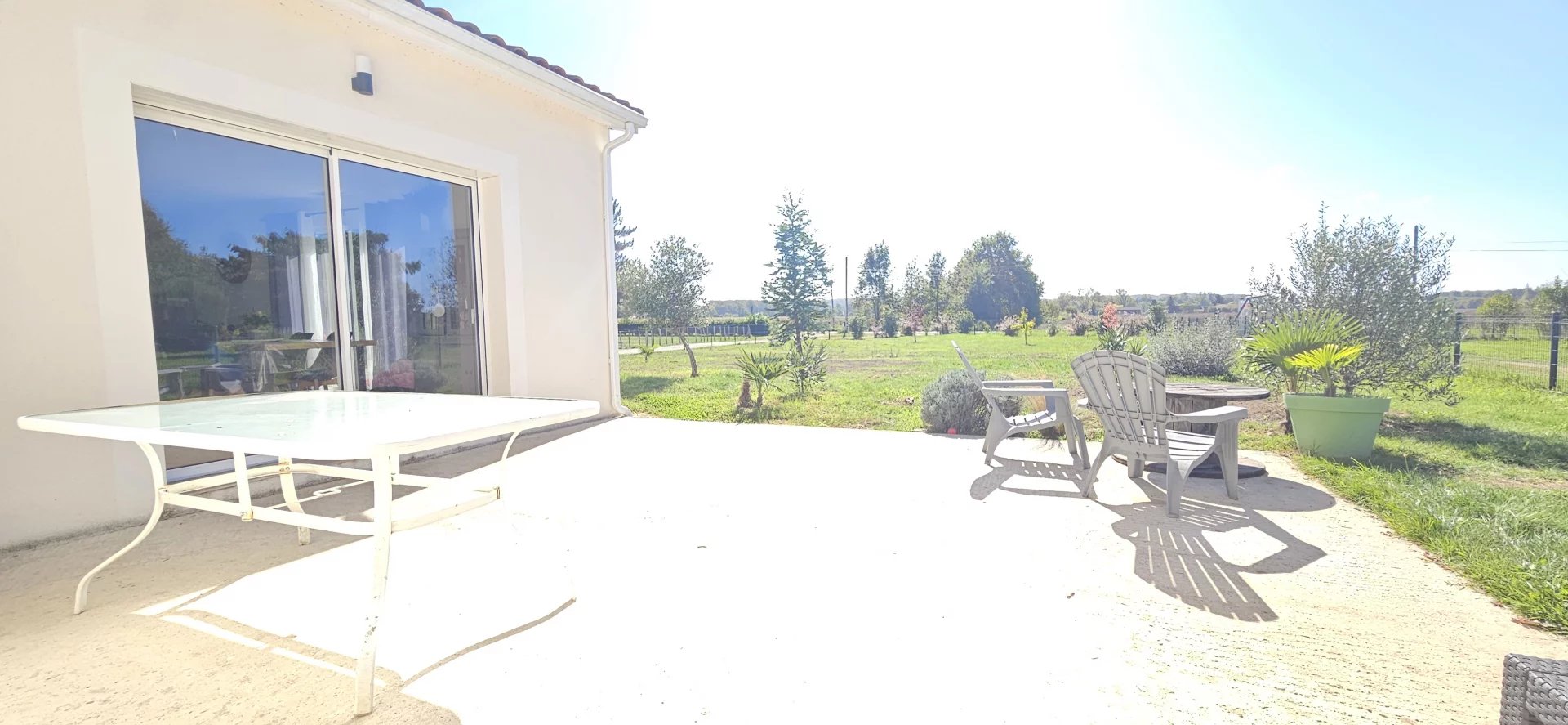 The exterior, fully enclosed on a 1,800 m² plot, invites you to relax and enjoy. The well-exposed terrace is ideal for al fresco dining or simply enjoying the peace and quiet.