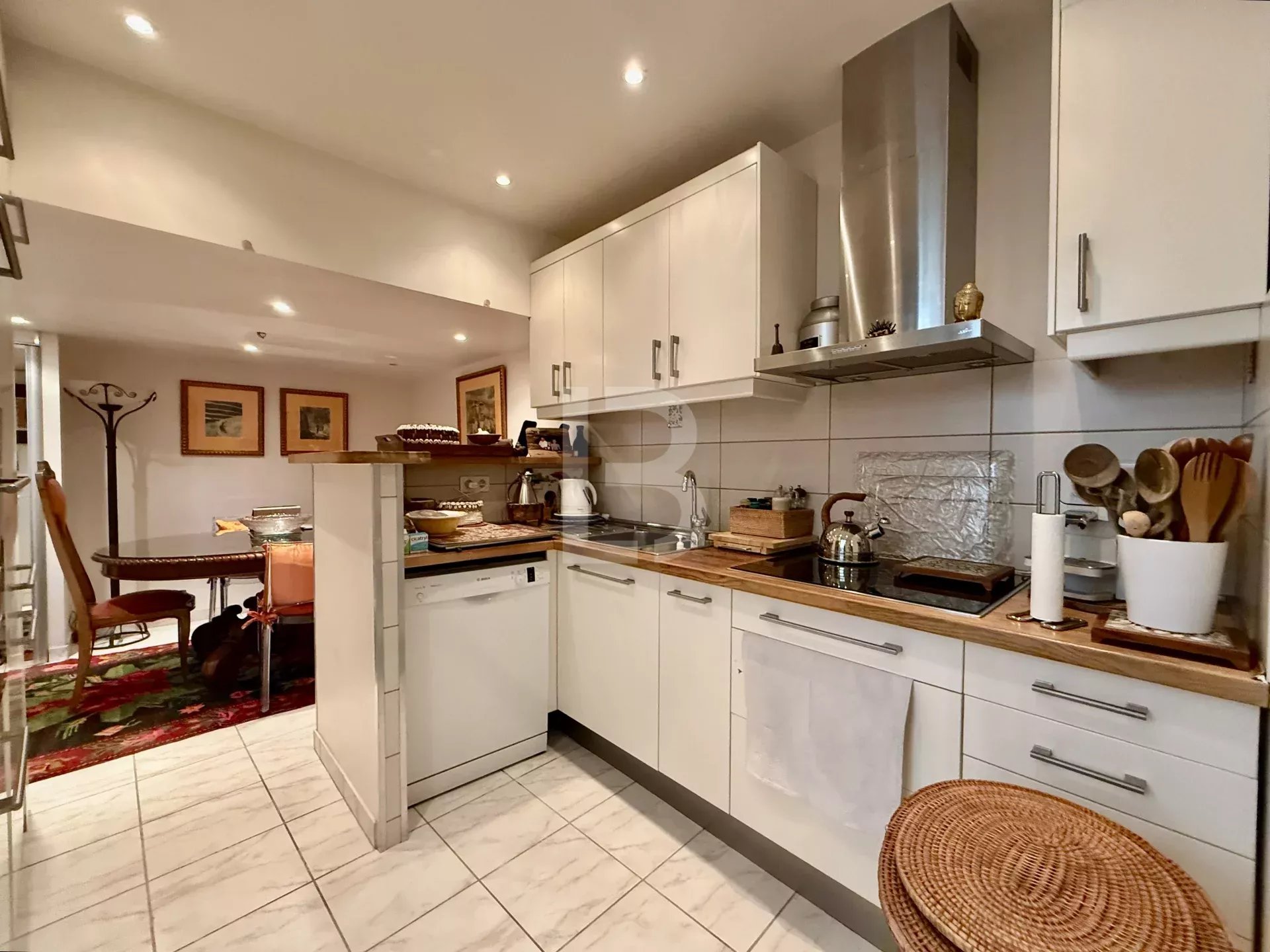 La cuisine, indépendante, pratique et bien agencée, s’ouvre sur une véritable salle à manger, idéale pour partager des moments de convivialité. La climatisation intégrale garantit un bien-être parfait en toute saison.