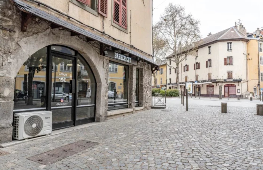 Situé à Chambéry, local commercial de 27,17 m² au rez-de-chaussée d'une petite copropriété de 4 lots. Il comprend une pièce principale et un coin sanitaires. Local vendu loué : loyer de 607 € par mois. Bail à effet du 24 janvier 2021 au 23 janvier 2030.