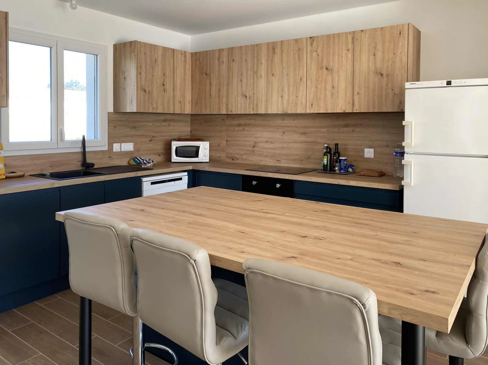 • Grande pièce de vie lumineuse : salon, salle à manger et cuisine ouverte avec îlot central