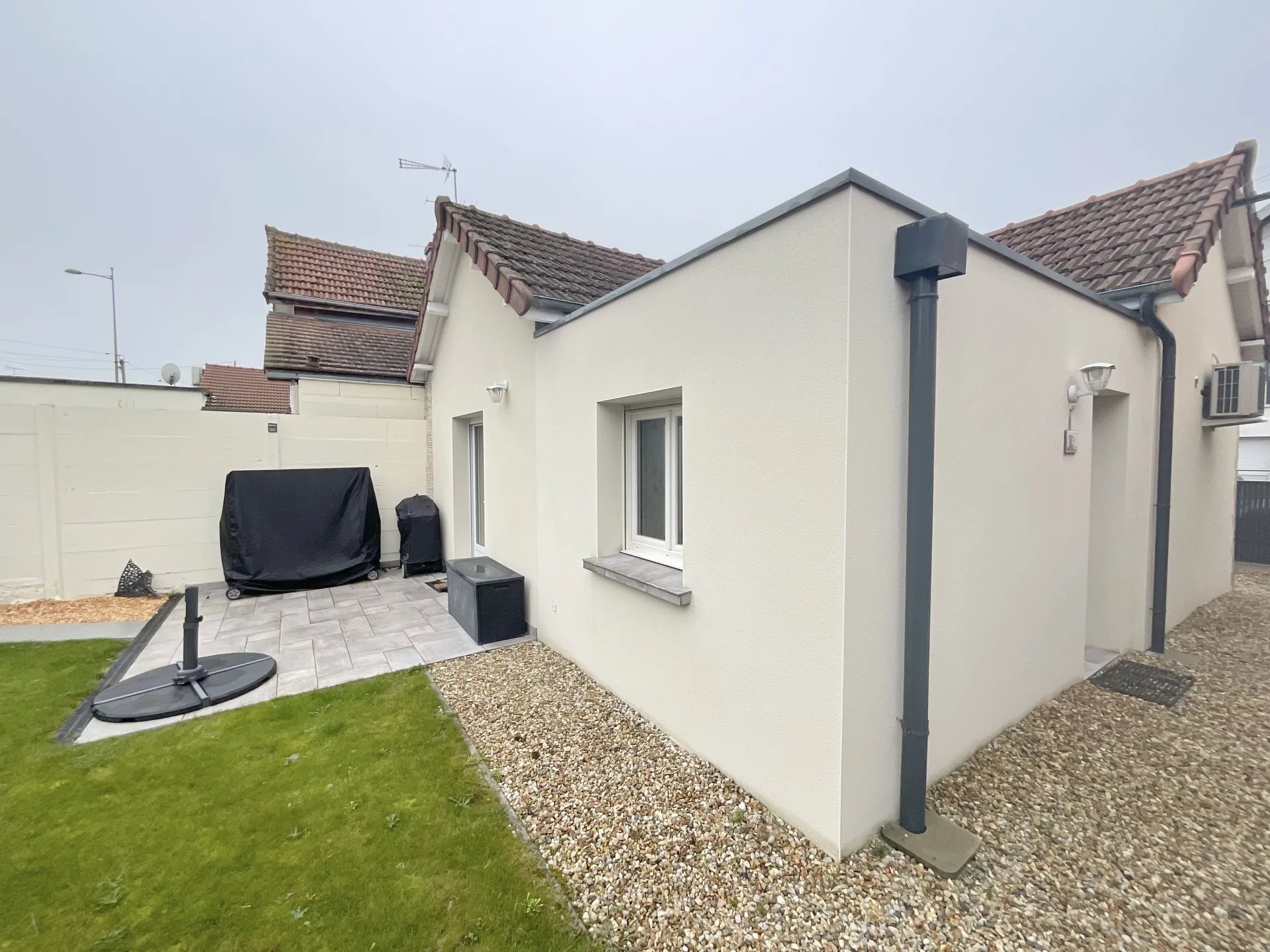 eXp Vous propose dans le quartier de l'hôpital , cette maison individuelle, 100% rénovée, vous aurez un Hall dégagement, pièce de vie de 26m2 Avec cuisine toute équipée aménagée, chambre de 11m2 avec placards, salle de douche PMR de 6,30m2 avec toilettes , logement impeccable, isolée, fenêtres PVC avec volets roulant , chauffage par climatisation air/air . terrain clos de 150m2 avec terrasse au sud et au calme sans vis à vis !!!
